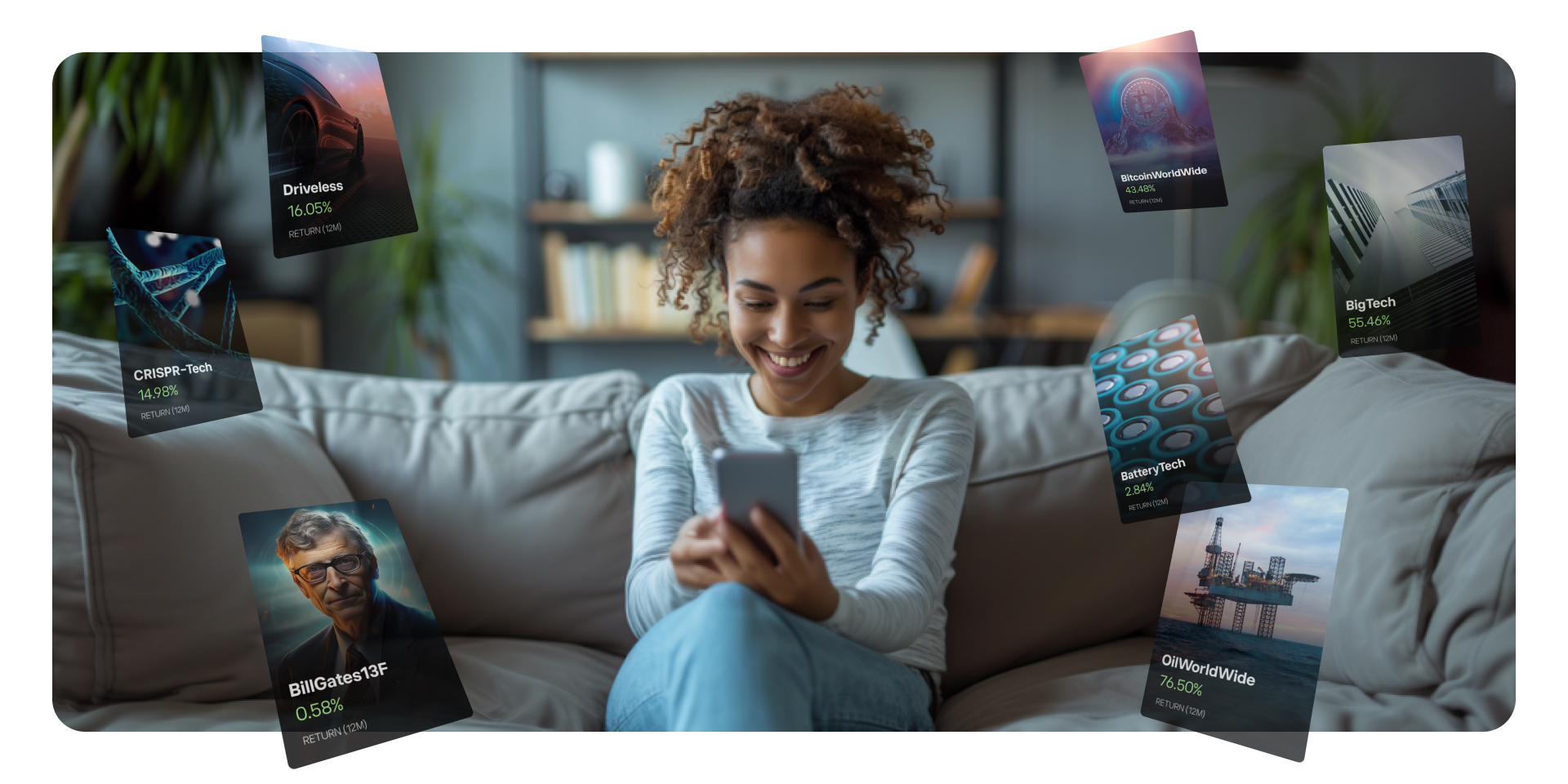 Our investment experts have done the research, analysis, and allocation to create a ready-made, balanced and diversified portfolio for our clients, specifically designed for optimal long-term performance. All you need to do is to take your pick from a variety of over 65 Smart Portfolios, spanning a range of top market themes, trends, and industries.