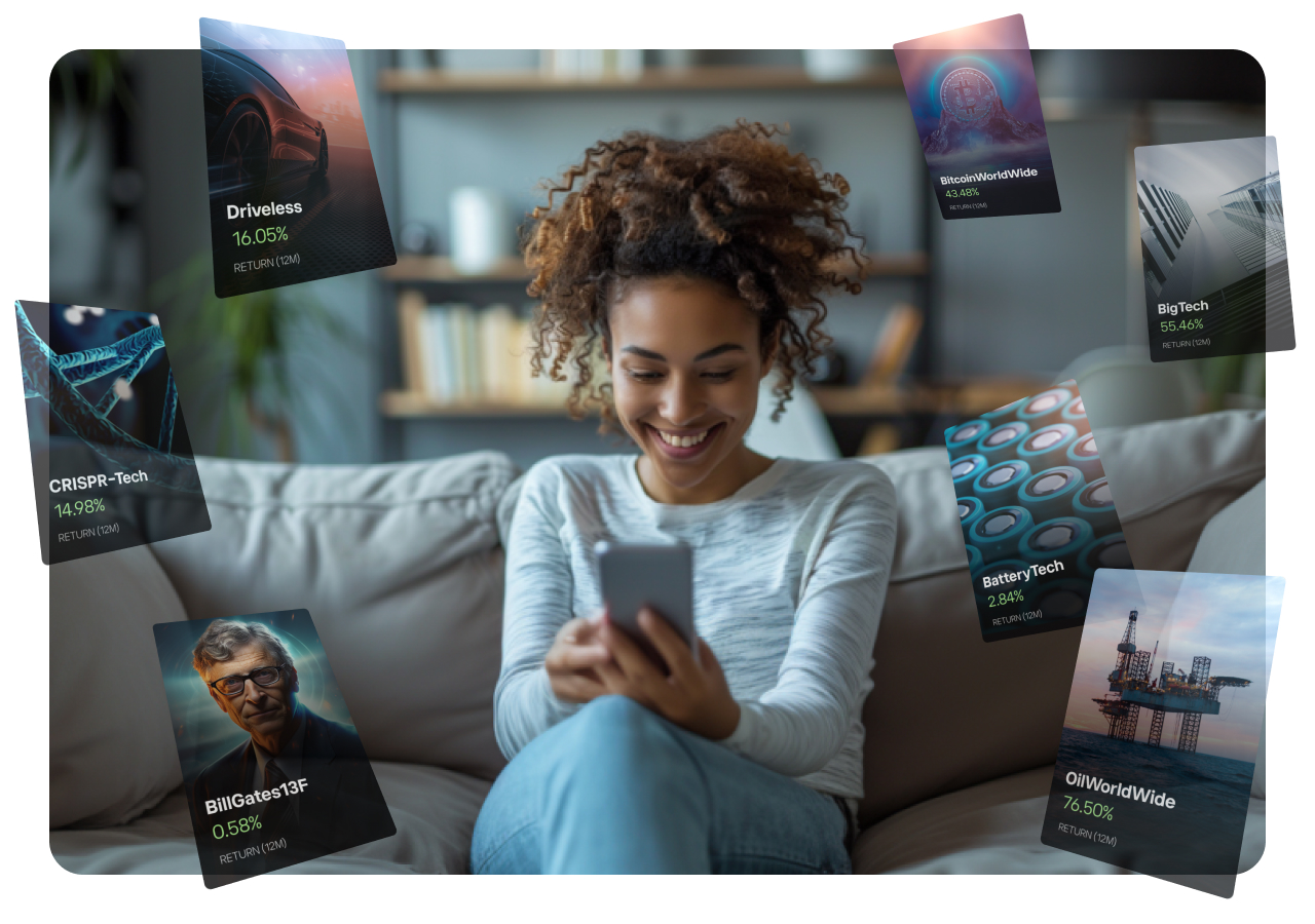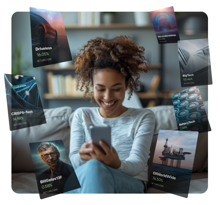 Our investment experts have done the research, analysis, and allocation to create a ready-made, balanced and diversified portfolio for our clients, specifically designed for optimal long-term performance. All you need to do is to take your pick from a variety of over 65 Smart Portfolios, spanning a range of top market themes, trends, and industries.